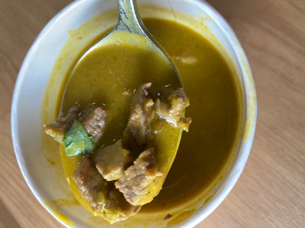 ☆写真はかぼちゃスープ半分とお水50mlくらい、ぶた肉を弱火で煮込みました、豆腐とくこの実だけ足して胃腸に優しいごはん
