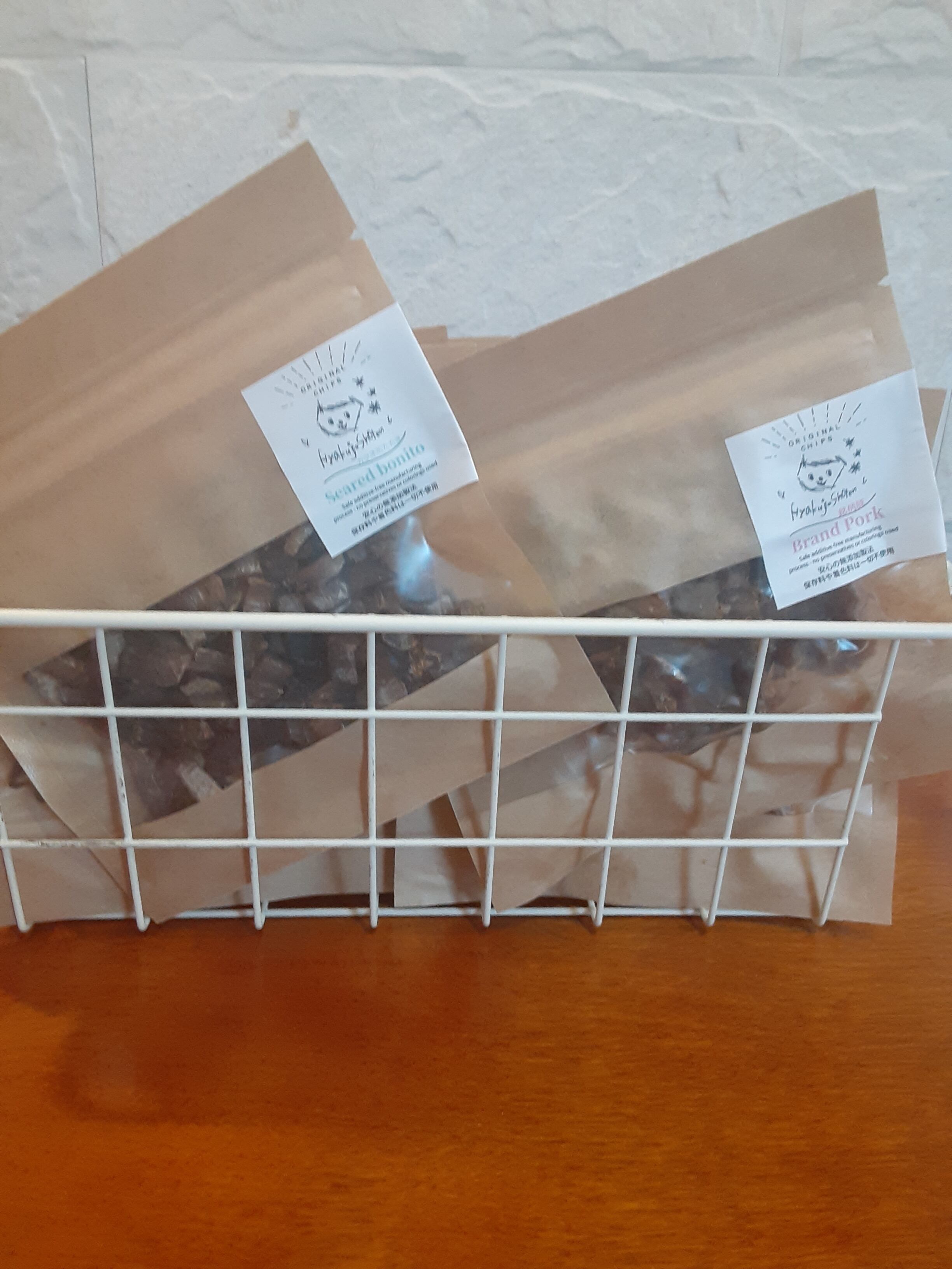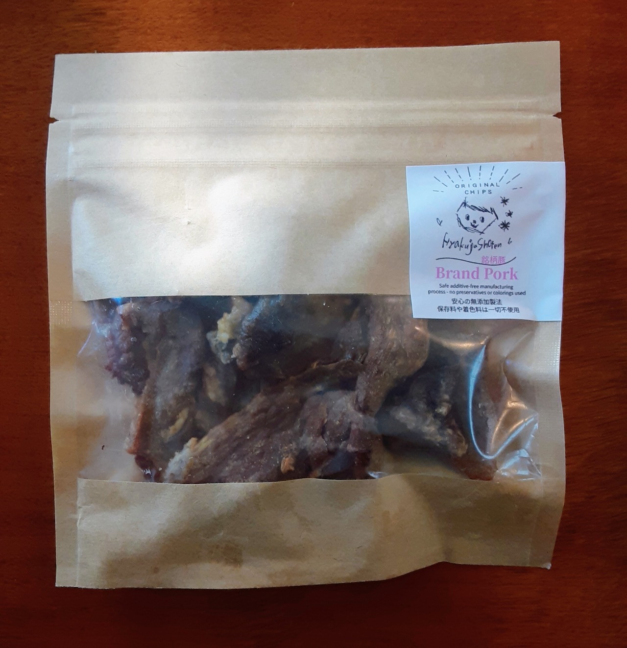 百寿商店の『ポークチップス』は、そんな飼い主様の願いに応えます。素材は国産銘柄豚肉だけ。余計なものは一切足さず、オーブンでじっくり焼き上げた素材そのままの安心おやつです。