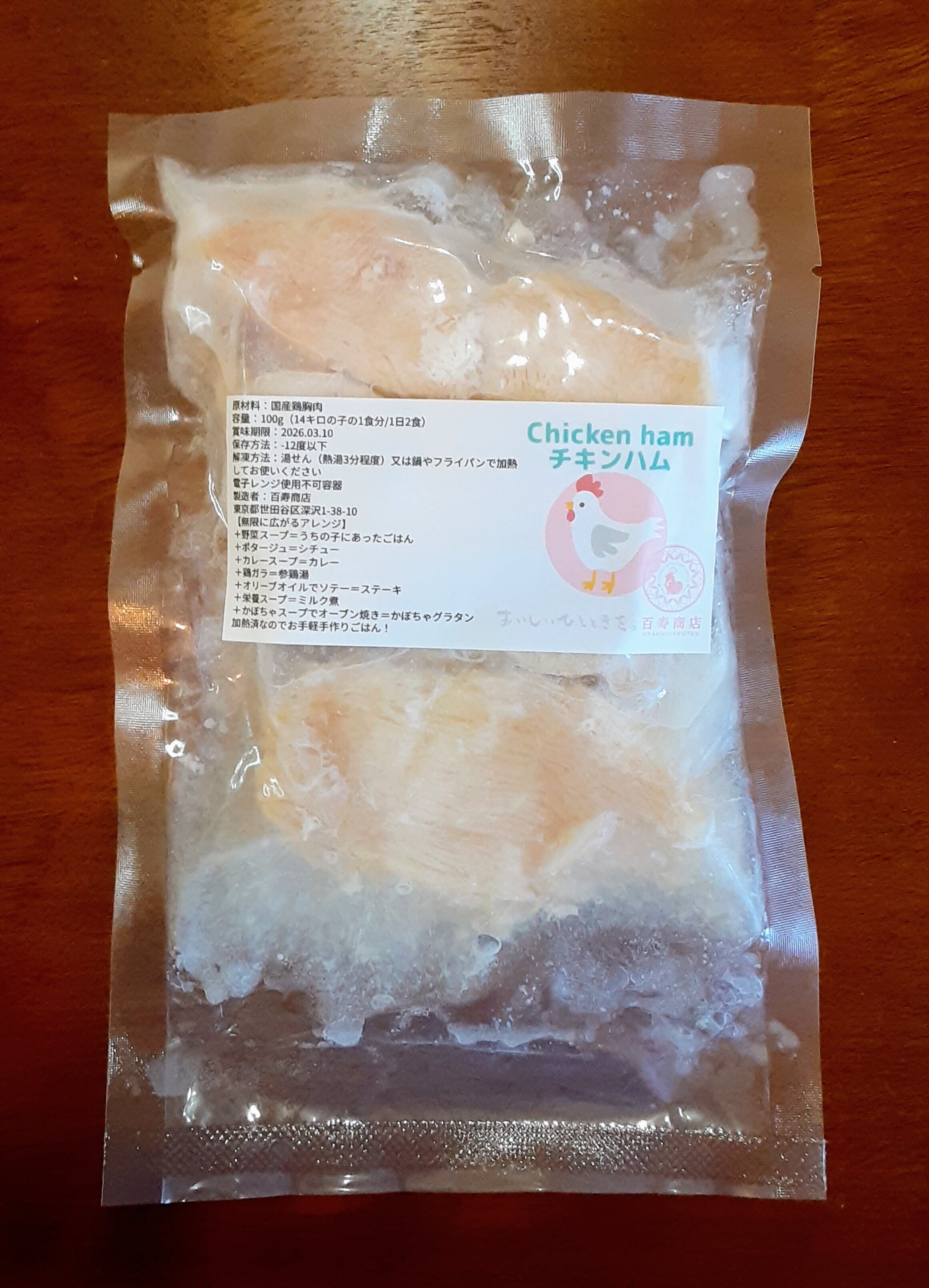 厳選された広域放飼いの国産鶏肉で、熱処理後に香り豊かなチキンハムに仕上げています。